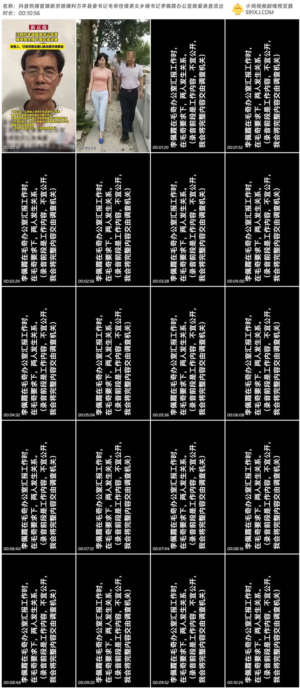 抖音热搜官媒新京报爆料万年县委书记毛奇性侵美女乡镇书记李佩霞办公室做爱录音流出